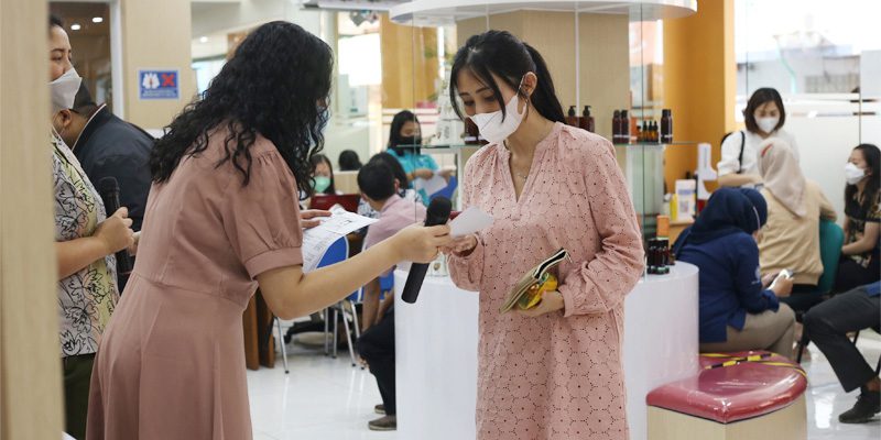 This event was also enlivened by PT Indocare Citrapasific who gave out free products such as Holisticare Ester C, Holisticare D3 1000, soap, and Holisticare Ester C Effervescent; Multicare who provided free health checks; and Blink Café who gave out free healthy drinks and vouchers for the vaccine participants.